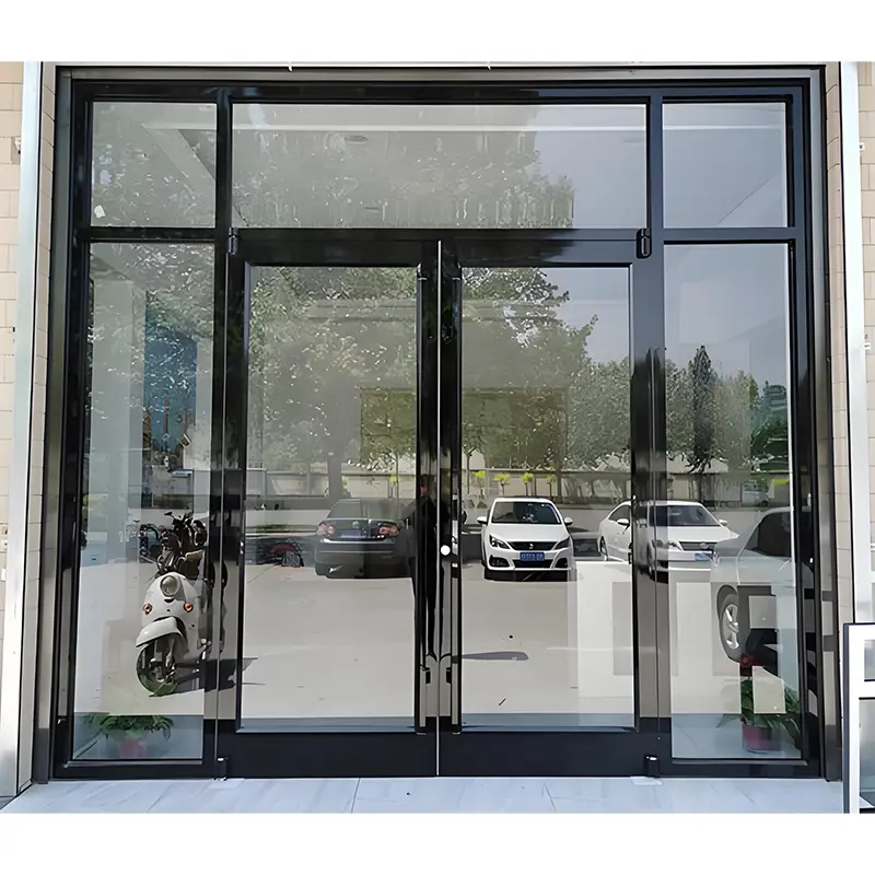Қалыңдатылған профильдер мен шыңдалған шыны YEHAOXUAN алюминий қорытпасынан жасалған коммерциялық есіктерді энергияны үнемдеу үшін тамаша жылу оқшаулауымен жабдықтайды; арнайы құрылымдық дизайн тығыздағышты жақсартады және шаңның енуіне жол бермейді.